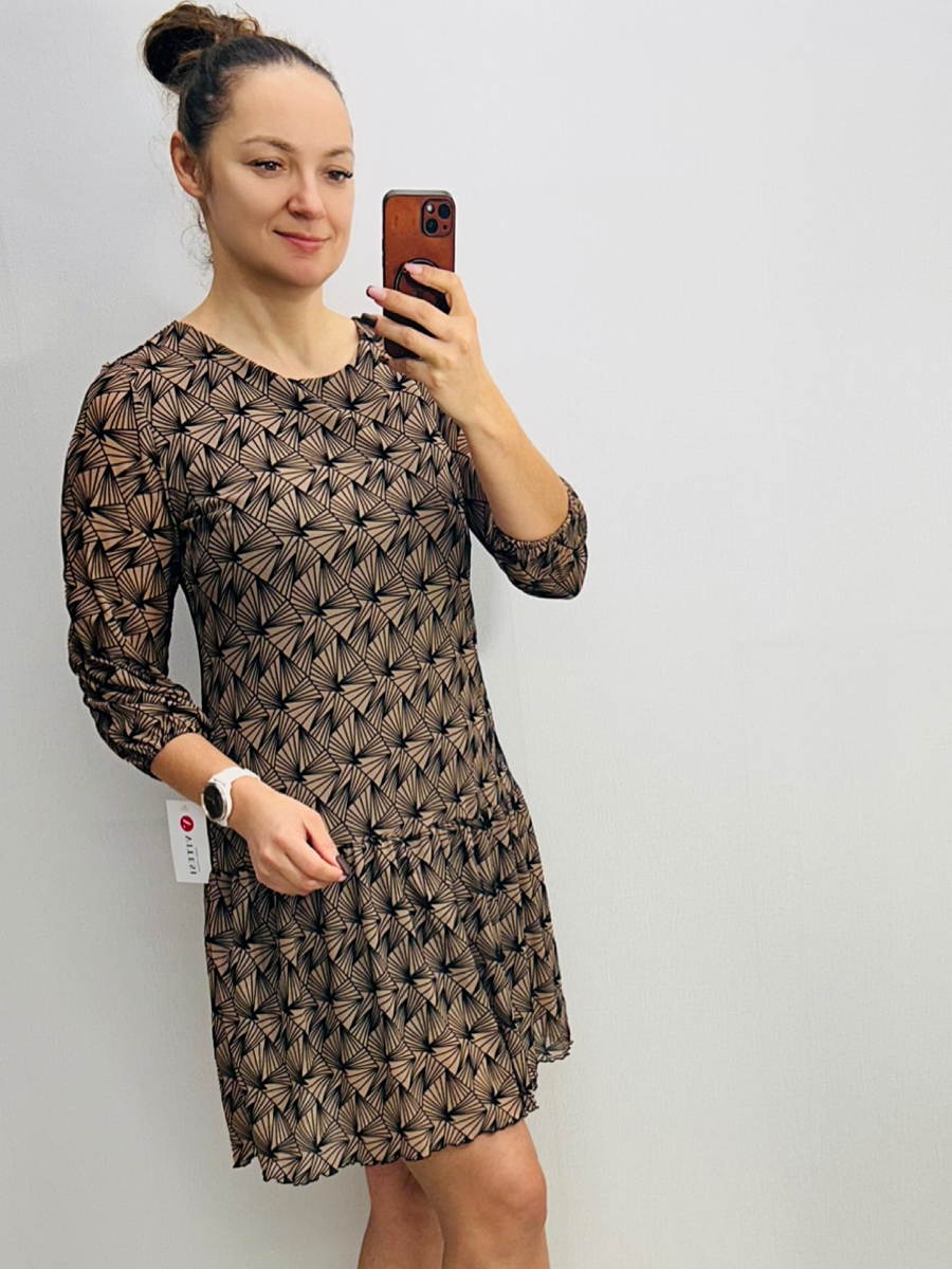 💫 Elegantne ja naiselik kleit Stiilne ja mugav kleit naisele, kes hindab elegantsi, kvaliteeti ja peent detaili. See mudel ühendab õhulise kerguse ning luksusliku sametise mustri, luues kauni ja naiseliku üldilme. 👗 Disain ja lõige Sirge lõige, kergelt avarduva alumise osaga ¾ pikkusega avarad varrukad – mugav ja liikumisvabadust pakkuv Allääres väike volang, mis lisab mängulisust Kaunilt langev pealiskangas, mis loob liikumisel kerge ja lendleva efekti Mustriline kangas sametja musta geomeetrilise mustriga – luksuslik ja pilkupüüdev detail 🌸 Materjal ja mugavus Õhuline ja kergelt läbikumav pealiskangas Kehaosas vooder – tagab mugavuse ja kindla enesetunde Pehme sametine muster Kergelt veniv kangas – istub seljas kaunilt ega sooni 💃 Sobib suurepäraselt ✔ Igapäevaseks kandmiseks ✔ Tööle ja kontorisse ✔ Pidulikumateks hetkedeks (sünnipäevad, koosviibimised, pühad) 📏 Suurus L Rinnaümbermõõt: 108 cm Puusaümbermõõt: 118 cm Pikkus: 94 cm 👠 Stiilisoovitused Sobib kandmiseks nii kontsadega kui ka lihtsate baleriinadega – lisa juurde minimalistlikud ehted ning oled valmis nii tööpäevaks kui ka pidulikumaks sündmuseks.