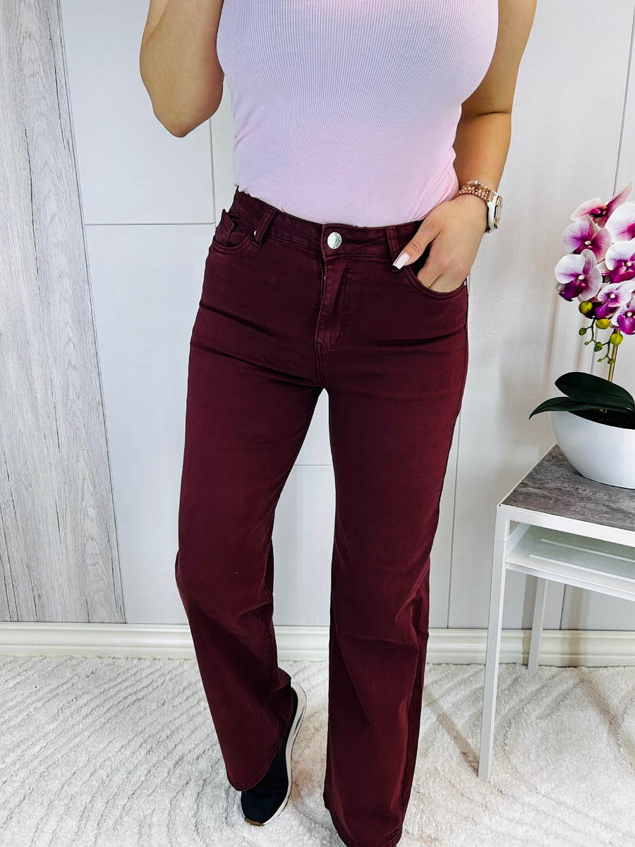 Stiilsed ja mugavad veinipunased püksid, mis sobivad ideaalselt nii igapäevaseks kandmiseks kui ka veidi viisakamaks outfitiks.