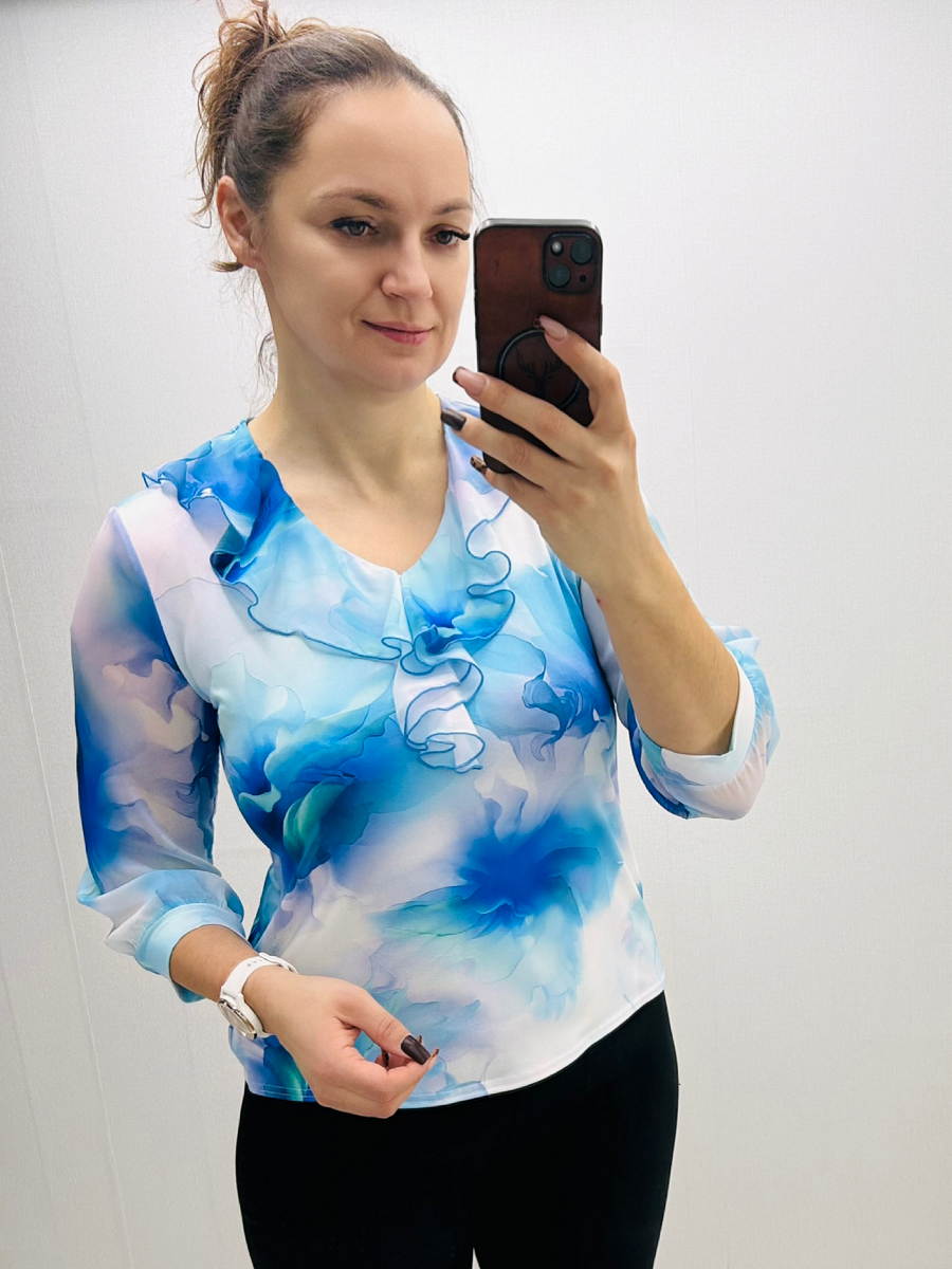 🌸 Yes pluus – elegantne ja naiselik valik 🌸 Elegantne ja naiselik pluus, mis ühendab mugavuse ja stiili. 💙 Õhulised šifoonvarrukad ning kraeosas olev õrn sats annavad pluusile romantilise ja peene ilme. Kehaosa on valmistatud pehmest ja venivast viskooskangast, mis istub mugavalt ning järgib kaunilt kehajoont. Pluus on kaunis sinistes toonides õhulise mustriga – värske, naiselik ja pilkupüüdev. Sobib suurepäraselt tööle, pidulikumaks sündmuseks või igapäevaseks kandmiseks – kombineeri lemmikpükste või seelikuga ning loo just endale sobiv stiil. 🌷 Suurus: 42 Rinnaümbermõõt: 102 cm Pikkus: 62 cm 👚 Materjal: 95% viskoos, 5% elastaan – pehme, hingav ja veniv materjal. Varrukad: õhuline šifoon, varruka lõpus elastne soonik mugavaks hoidmiseks. Kraeosa: kaunistatud õrna satsiga, mis lisab romantilist ja naiselikku puudutust. 💠 Kaunis, mugav ja silmapaistev pluus naisele, kes hindab nii elegantsi kui ka kandmismugavust.