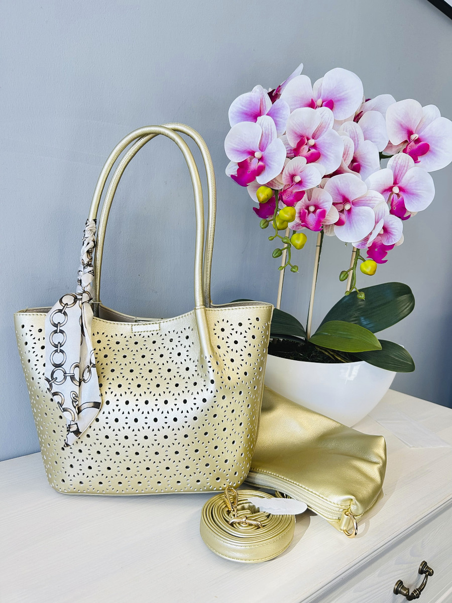 💛 Komplektis: – Suur kott – Väike sisemine kott – Pikk rihm – Eemaldatav kaunistussall