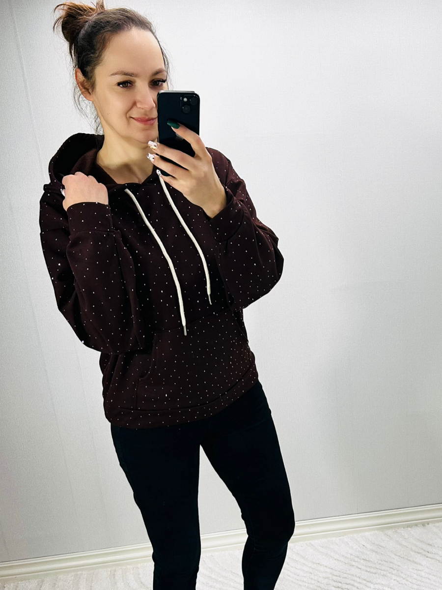 ✨ SÄRAV kivikestega pusa – sinu uus lemmik! ✨ Kui otsid midagi ühtaegu mugavat, pehmet ja natuke glamuurset, siis see pusa on just see! Pisikesed kivikesed annavad mõnusa sära, aga pusa ise jääb stiilselt tagasihoidlik – ideaalne nii tööle, koju kui linnatiirule. Seest uhutud → superpehme ja soe! Ees suur tasku, kapuuts, mugav lõige. Langeva õlaga mudel, mis näeb eriti äge välja ka oversize-lookina. Pane lihtsalt selga ja tunne end hästi! 💖 Materjal: 47% viskoos, 47% polüester, 6% lycra – pehme, veniv ja vastupidav. Mõõdud: S/M: RÜ: 122 cm Pikkus: 66 cm L/XL: RÜ: 128 cm Pikkus: 68 cm ✨ See pusa on täpselt see ese, mille tõmbad hommikul selga ja mõtled: “Jah, täna tunnen end hästi!” Sobib kingiks, sobib endale – sobib iga päev! 💫