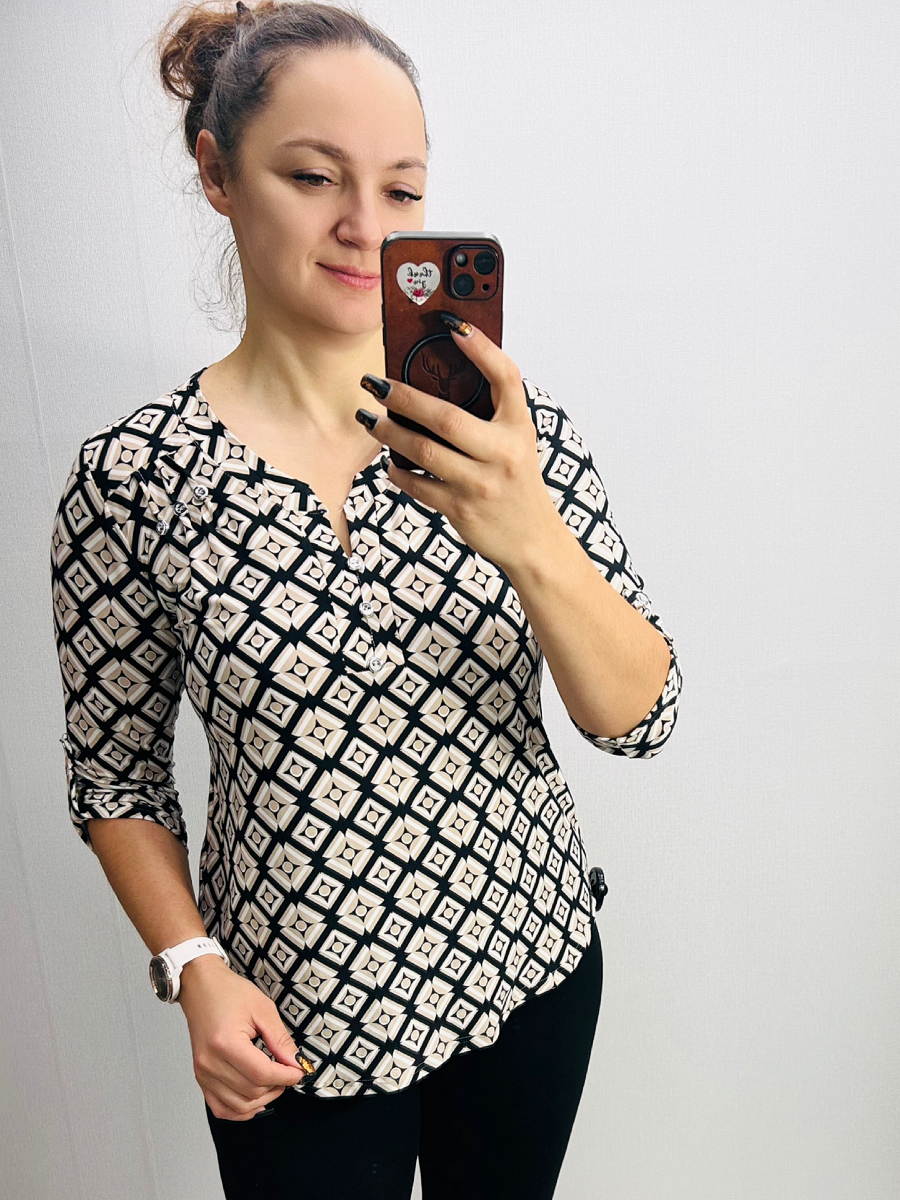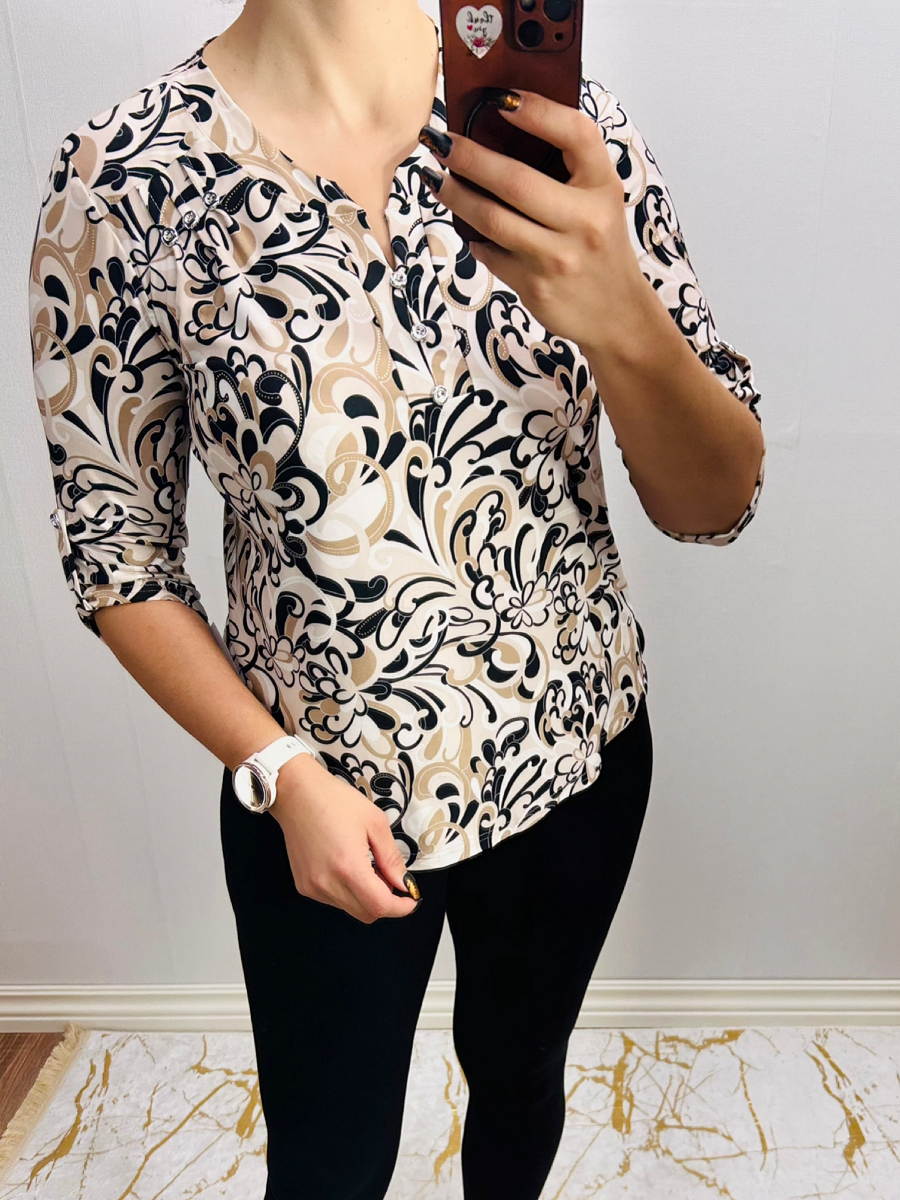 🌸 Kaunis ja mugav mustriline pluus – stiil igasse päeva! 🌸 Otsid pluusi, mis on ühtaegu mugav, naiselik ja veidi luksusliku tundega? See kaunilt langev mustriline pluus on loodud naisele, kes hindab nii stiili kui ka praktilisust. ✨ Materjal ja tunne Polüestri ja elastaani segu on hästi veniv, pehme ja mugav kanda. Õrnalt sametine pealispind on katsudes siidine ning jätab naha vastas meeldiva, pehme tunde. Lisaks on kangas kortsuvaba ja langeb kaunilt. 💎 Disain, mis pilku püüab Ajatu ja efektne geomeetriline muster Ees dekoratiivsed nööbid, mis lisavad elegantset triiksärgiliku joont Üleskeeratavad varrukad – kanna ¾ pikkusega või täispikalt Kergelt avatud kaelus, mis raamib nägu ja sobib nii ehte kui salliga 💫 Sobib ideaalselt igapäevaseks kandmiseks tööle või kontorisse õhtuseks väljaminekuks teksade või viisakate pükstega 🖤 Materjal: polüester / elastaan Hästi veniv, langev ja praktiline – ideaalne valik kiire eluviisiga naisele. 📏 Suurused ja mõõdud: L – rinnaümbermõõt 102 cm, pikkus 67 cm XL – rinnaümbermõõt 108 cm, pikkus 68 cm 2XL – rinnaümbermõõt 112 cm, pikkus 69 cm 3XL – rinnaümbermõõt 116 cm, pikkus 69 cm 👗 See pluus on justkui väike stiilivõit – näeb hea välja, tundub mugav ja sobib paljudele figuuridele. ✨ Lisa oma garderoobi pehmelt sametine ja kaunilt langev lemmik!