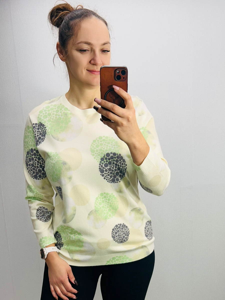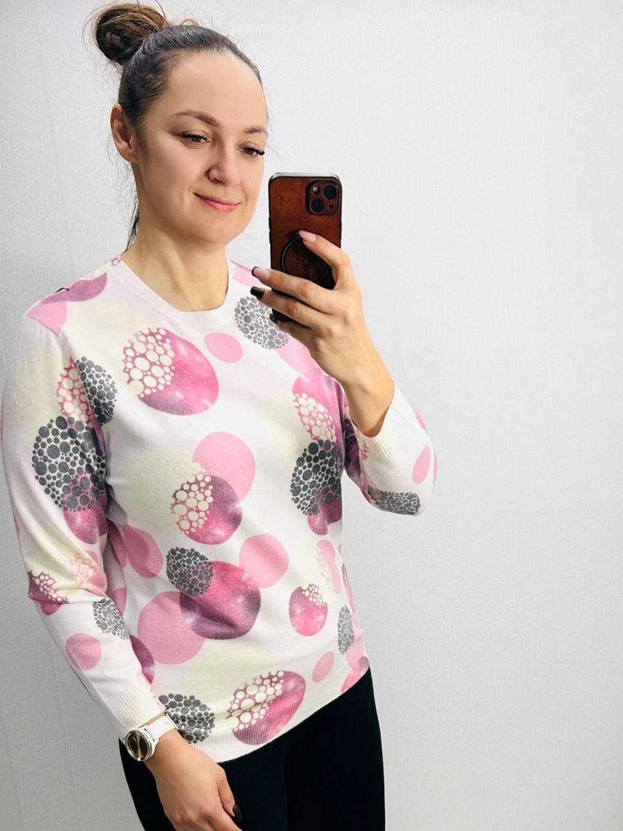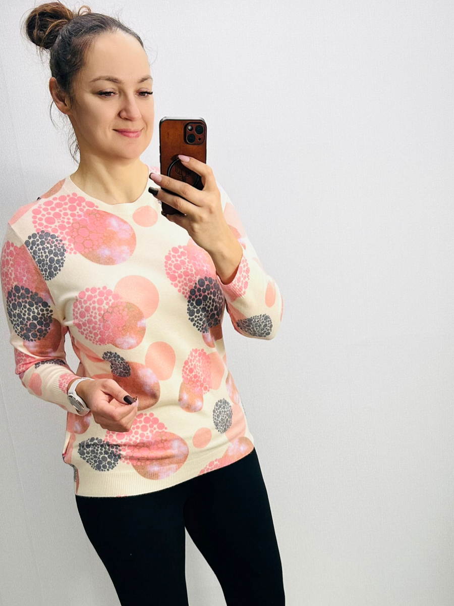 ✨ Mõnus ja mugav mustriline sviiter ✨ Otsid midagi, mis oleks ühtaegu stiilne ja supermugav? See pehme ja veniv sviiter on ideaalne valik igapäevaseks kandmiseks! 💫 Kerge ja elastne kangas tagab suurepärase liikumisvabaduse 💫 Hoiab hästi vormi ega kaota oma ilusat välimust 💫 Nahasõbralik ja pehme tänu viskoosile 💫 Vastupidav ja kvaliteetne materjal Modernne ja naiselik ümar muster loob pilkupüüdva, kuid samas maitsekalt tasakaalustatud visuaali. Sobib nii igapäevaseks kandmiseks kui ka veidi viisakamaks sündmuseks. 👚 Koostis 49% viskoos 28% elastaan 23% polüamiid 📏 Suurused ja mõõdud M/L – rinnaümbermõõt 110 cm, pikkus 69 cm XL/2XL – rinnaümbermõõt 116 cm, pikkus 71 cm 🎨 Saadaval värvitoonid 🌸 Heleroosa – pehmed pastelsed toonid, naiselik ja romantiline 💜 Lilla – mänguline ja rõõmsameelne valik ❤️ Koralliroosa – soe ja energiline toon 💚 Pastelne roheline – rahulik ja looduslähedane Sobita teksade, retuuside või seelikuga – tulemuseks on alati stiilne ja mugav komplekt 💕